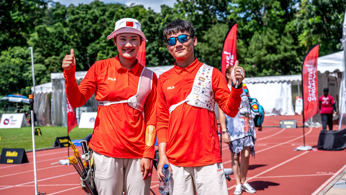 在新加坡举行的2023年亚洲杯决赛日,中国队夺得了四项反曲冠军:男子团体、混合团体和个人男女金牌。他们的前线团队结合了最近的天赋和经验丰富的经验,在武吉贡巴克体育场的反曲决赛中表现出色。