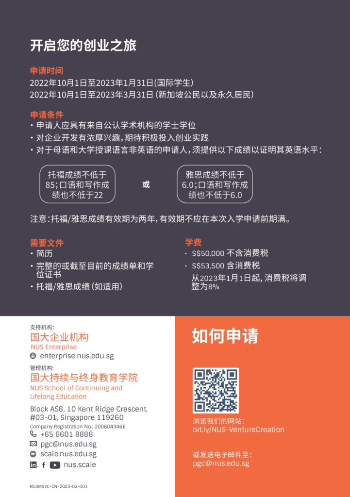 Education Government School 课程信息 | 新加坡国立大学-企业开发硕士 4 月 15 2023 新加坡国立大学企业开发硕士课程 Related articles 新加坡南洋理工大学(NTU)学院介绍丨电机与电子工程学院(EEE) 3 月 27 2023 International School Tanglin Trust School 12 月 21 2022 Project Management Association Singapore (PMAS) 4 月 15 2023 上海市教委主任:高校毕业生就业遇到前所未有重大挑战 5 月 30 2023