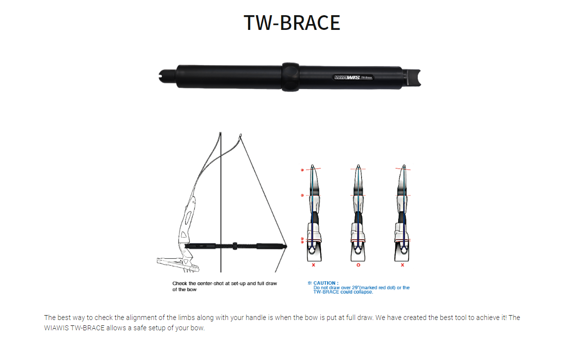The best way to check the alignment of the limbs along with your handle is when the bow is put at full draw. We have created the best tool to achieve it! The WIAWIS TW-BRACE allows a safe setup of your bow.