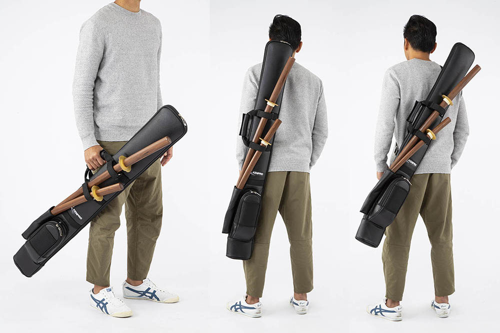 3 39 shinai can be easily accommodated in the same direction. As an added bonus, two wooden swords (a large sword and a small sword) can be put together if the brim is removed.